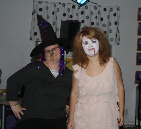 Klubblokalen var smyckad med spindlar, spindelnät, ballonger & spotlights. Dessutom var några av de dansanta besökarna läckert utklädda! Halloween discot har blivit en go tradition och tjejerna & killarna gillar det verkligen! |